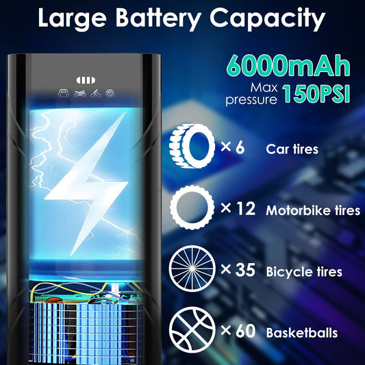 Compact Air Compressor 6000mAh 150 PSI with LED Light